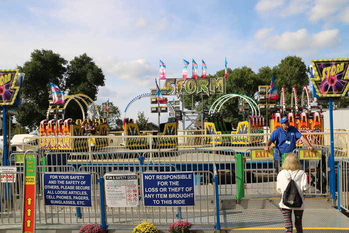 The Storm is a fast moving thrill ride that twirls riders in multiple directions. At night the Storm is decked out with dance style lighting, music, and fog.